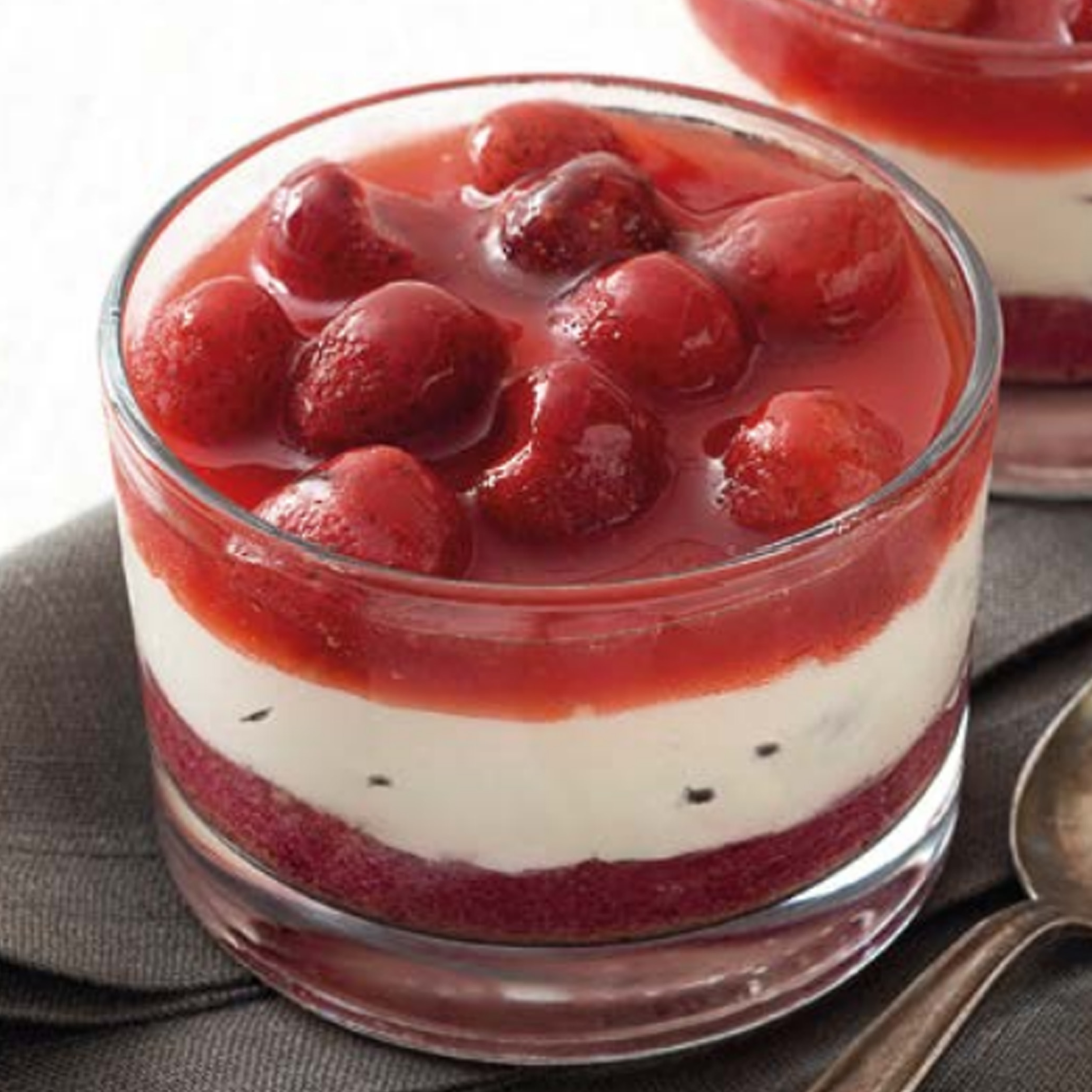 A taça Mascarpone e Fragole, da Bindi, combina a suavidade do creme de mascarpone com delicadas lágrimas de chocolate, criando uma base cremosa e envolvente. No topo, morangos e compota da mesma fruta acrescentam frescura e cor. Servido em taça de vidro, é uma sobremesa irresistível à primeira colherada.